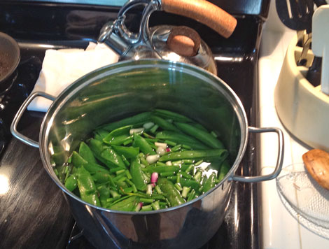 “A surprising amount of flavor can be coaxed from spent pea pods by simmering them in water.”