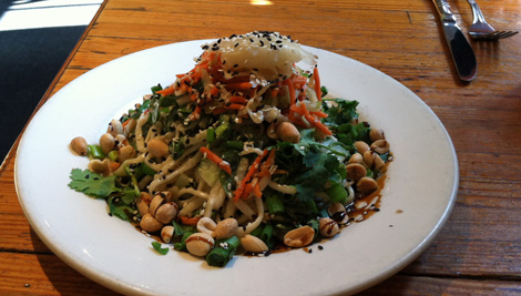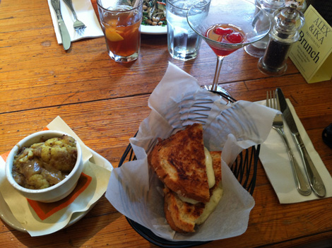 After, we walked to the other end of Main Street to a swell restaurant called Alex & Ika… we needed to sit. I had my eye on the Sesame Noodles, but Carol ordered them ahead of me. I always like to try something different when we eat out, so I had the Grilled 3 Cheese Sandwich with a side of Curried Cauliflower. The Cauliflower was GREAT. Very tasty. [When I got home I went searching for Curried Cauliflower recipes.]