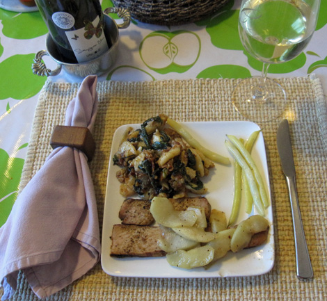 Cooked 8.2013 — Substituted a shallot for scallions. Used stand mixer. Cooked on Big Green Egg. Used same temps as for oven baking; platesetter legs up, grate on that, baking dish on grate. Just as good as always.