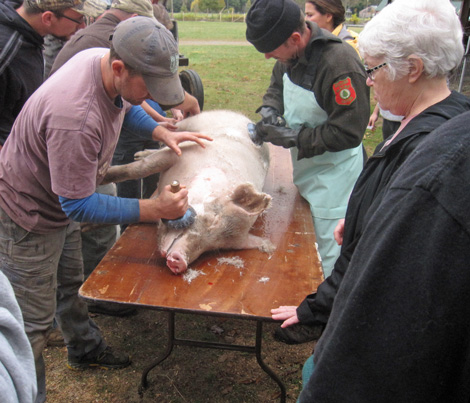 Mix by hand = Break 2 large eggs into a big bowl and lightly beat. Toss in the ground beef and pork a big pinch at a time. Add the cooled cooked vegetable mixture and 1 C breadcrumbs. Mix by hand until thoroughly combined. Do not overhandle.