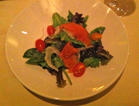 sat – Final Four – Salmon Tartare over cauliflower salad from LO grilled King Salmon — Jacques