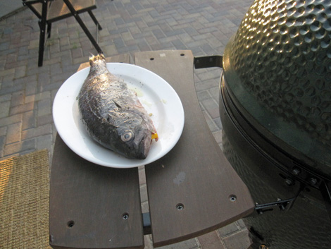 Swordfish on SaltROX May 2013 on Weber Q gas grill.