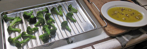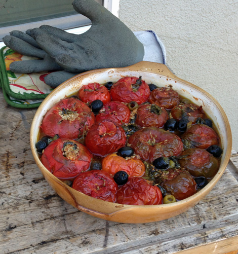 tomatoes rest — note that the smoke has coated the roasting dish… that’s a bitch to get off… next time maybe a disposable roasting pan would work.