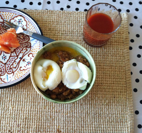 Merguez, Brussels sprouts, grilled cippilini and scraps of red bell pepper for color